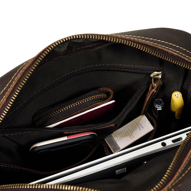 Effortless Style: Rich brown leather with unique front pocket design adds vintage charm for any setting.
